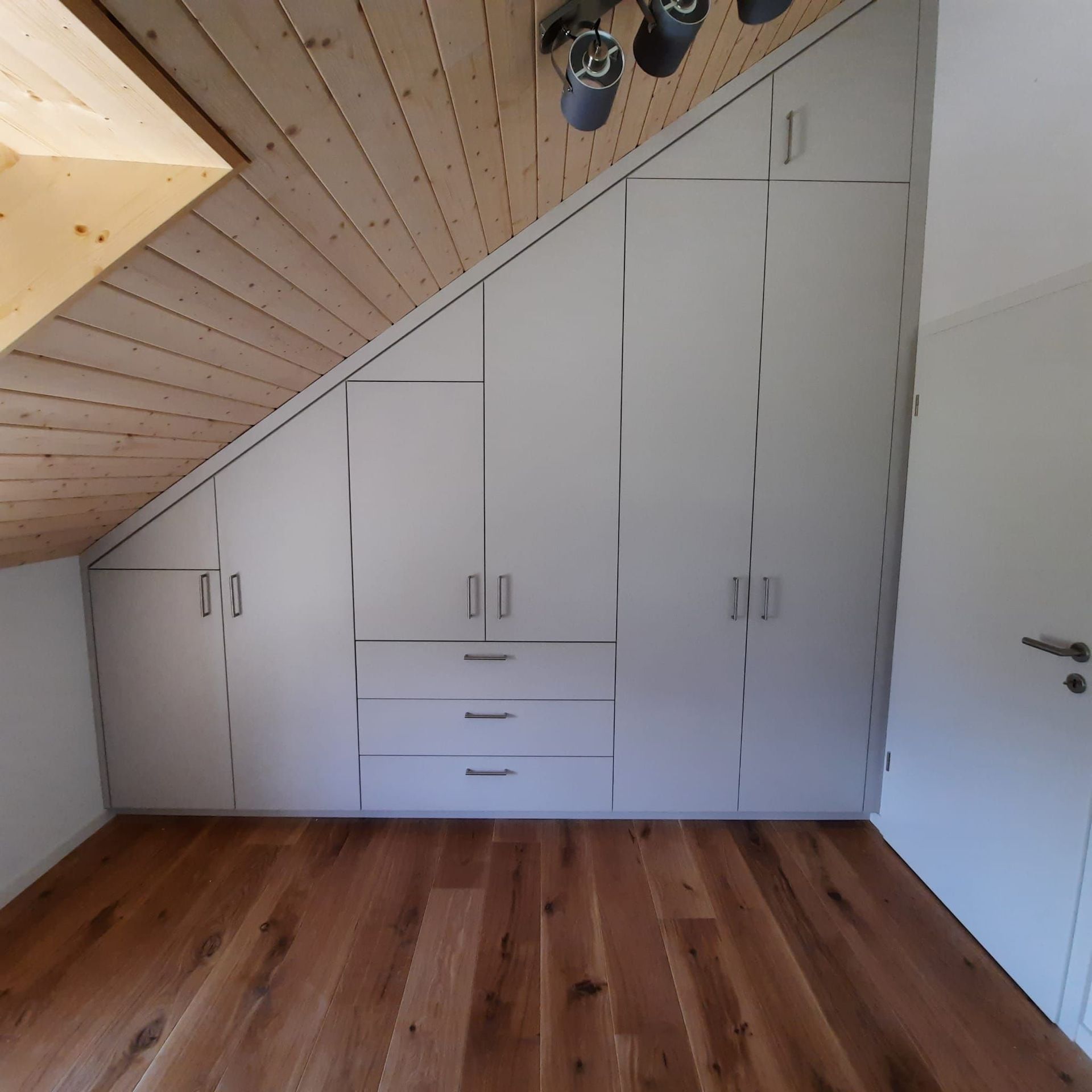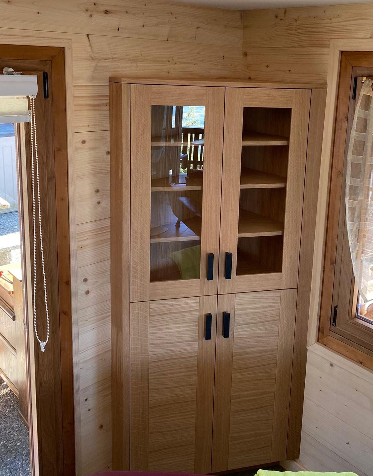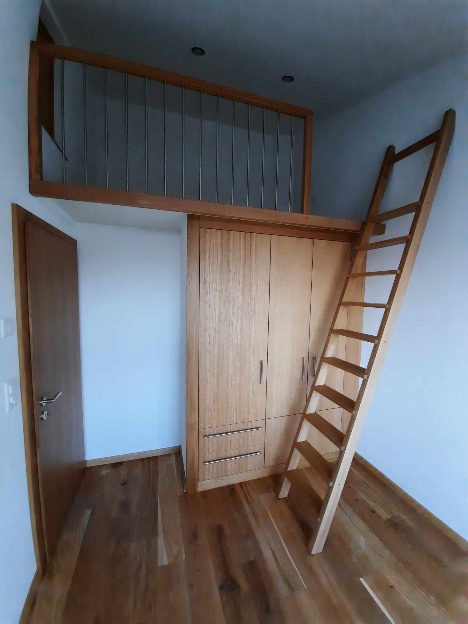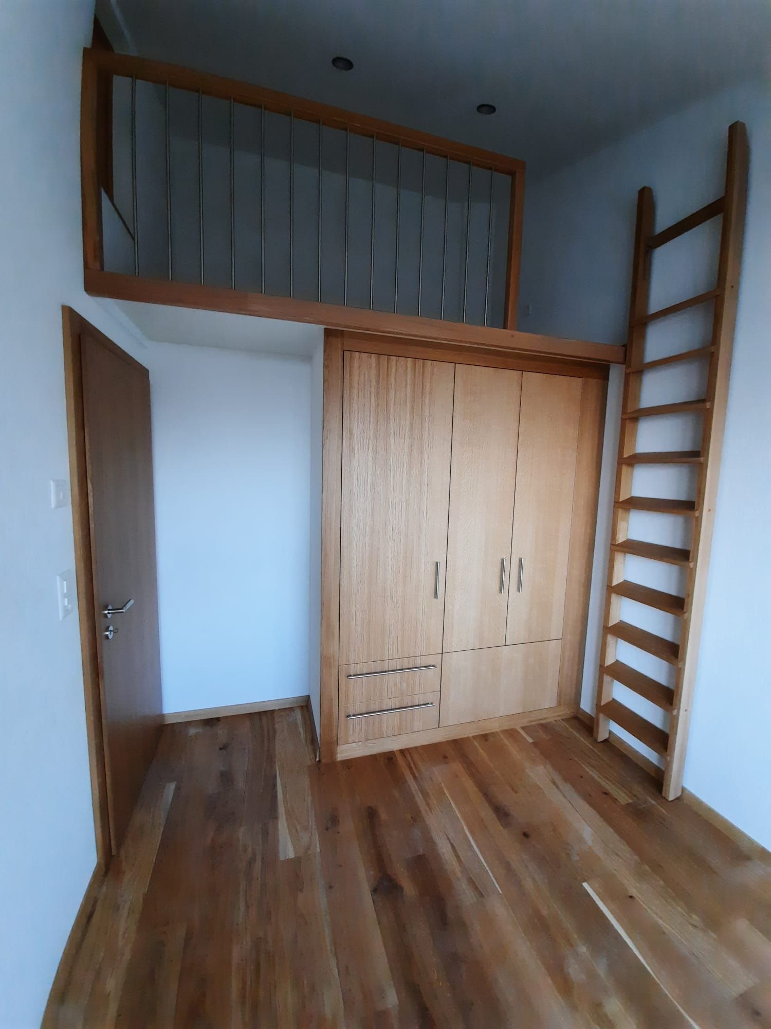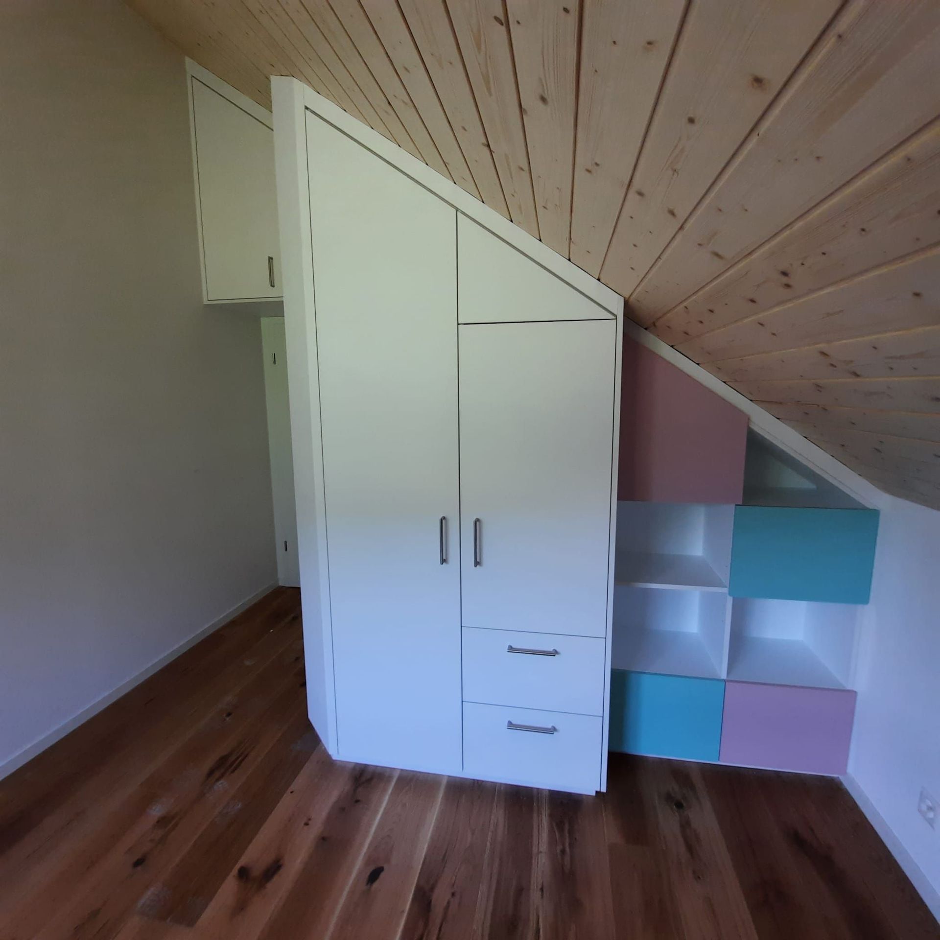 Armoires avec portes coulissantes en mélaminé avec éclairage intérieur, partie supérieure blanche adaptée pour y projeter un écran!