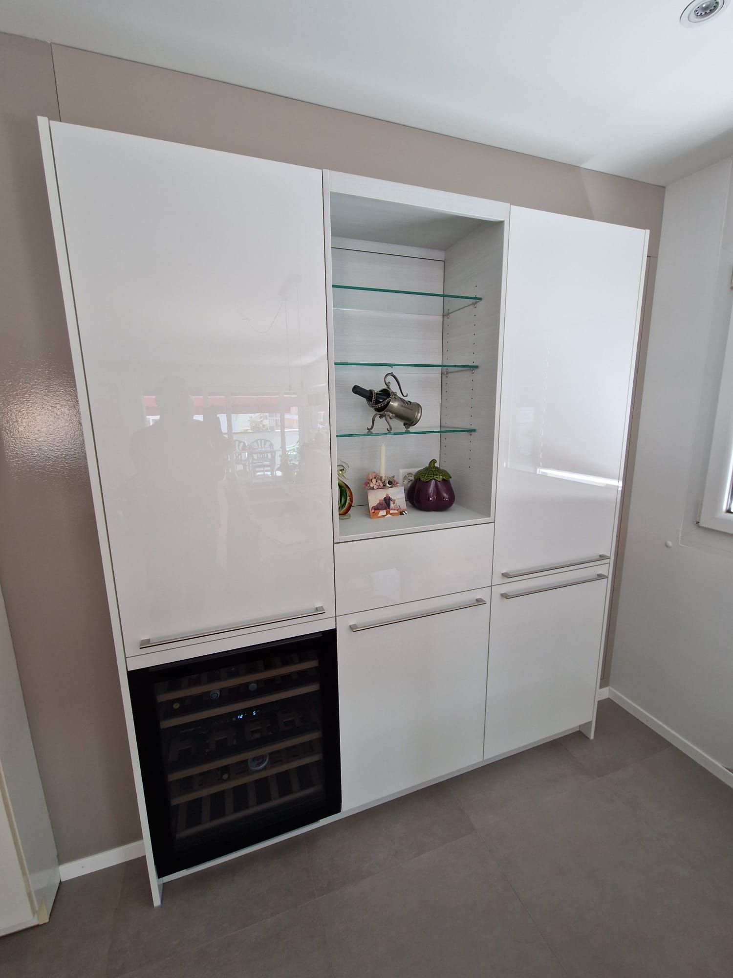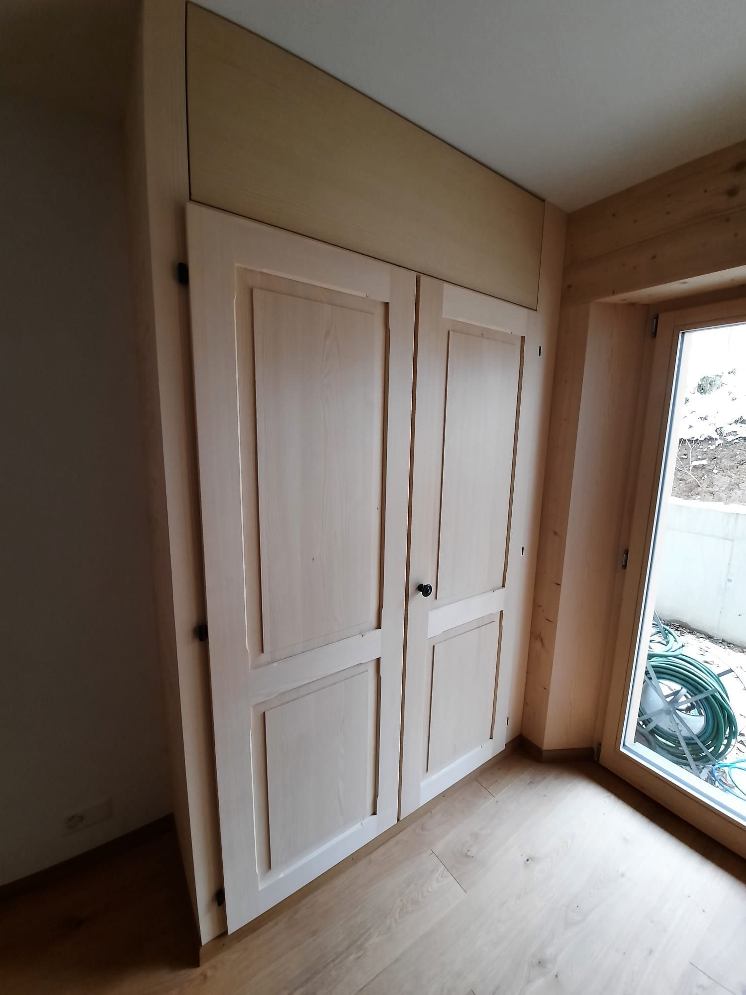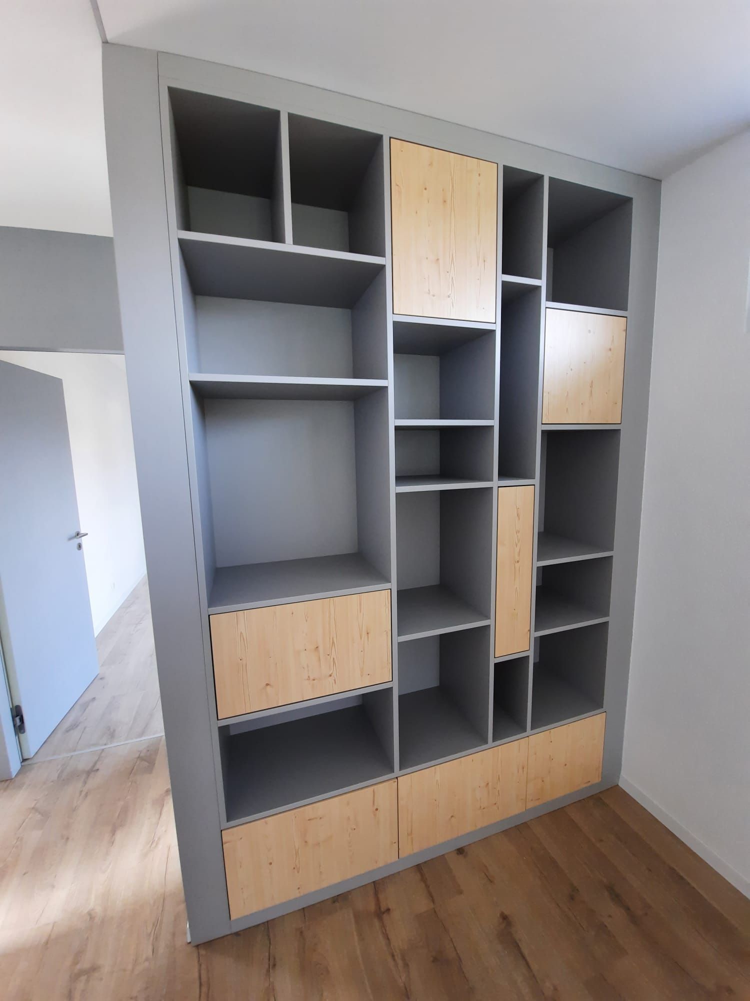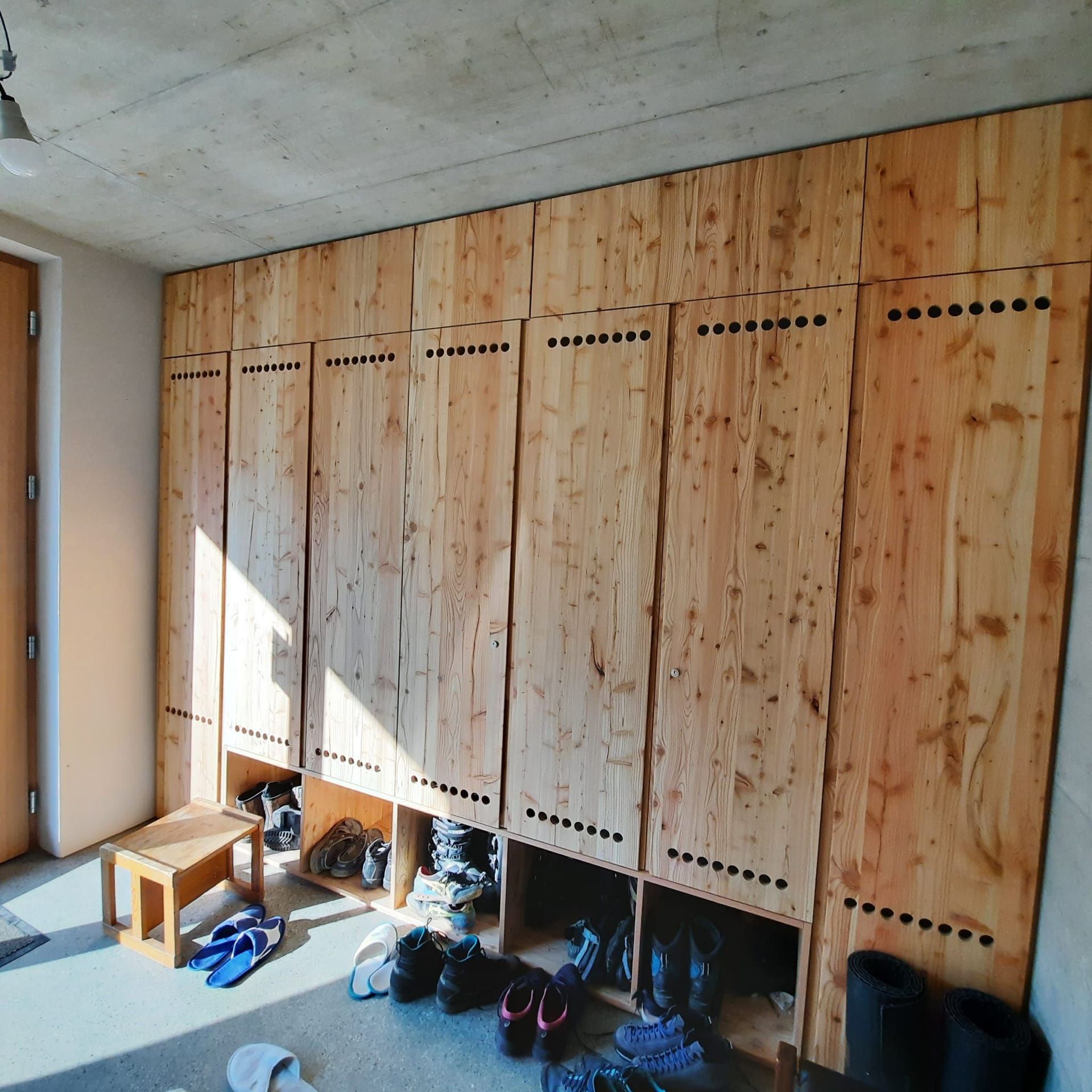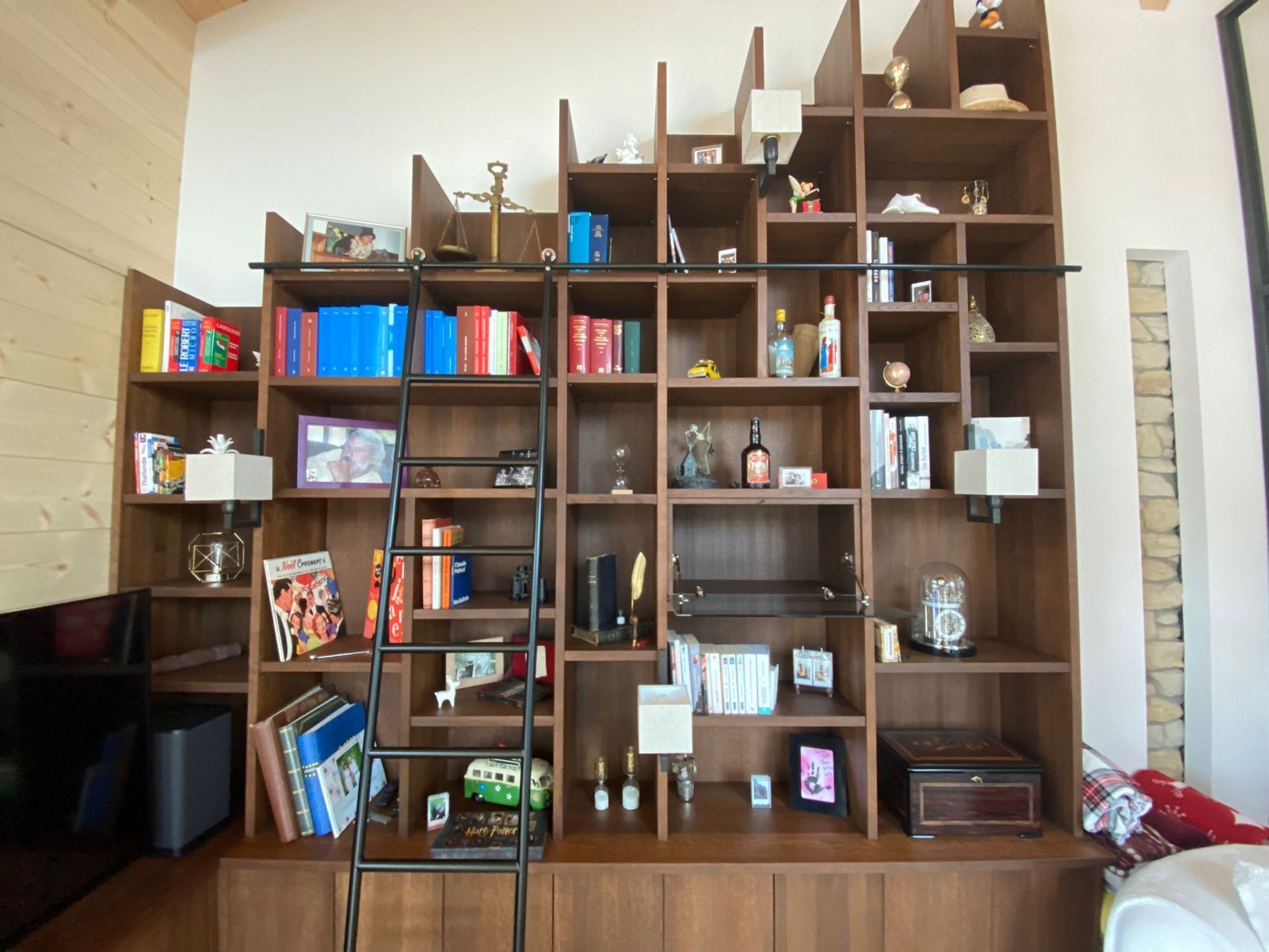 Armoires avec portes coulissantes en mélaminé avec éclairage intérieur, partie supérieure blanche adaptée pour y projeter un écran!