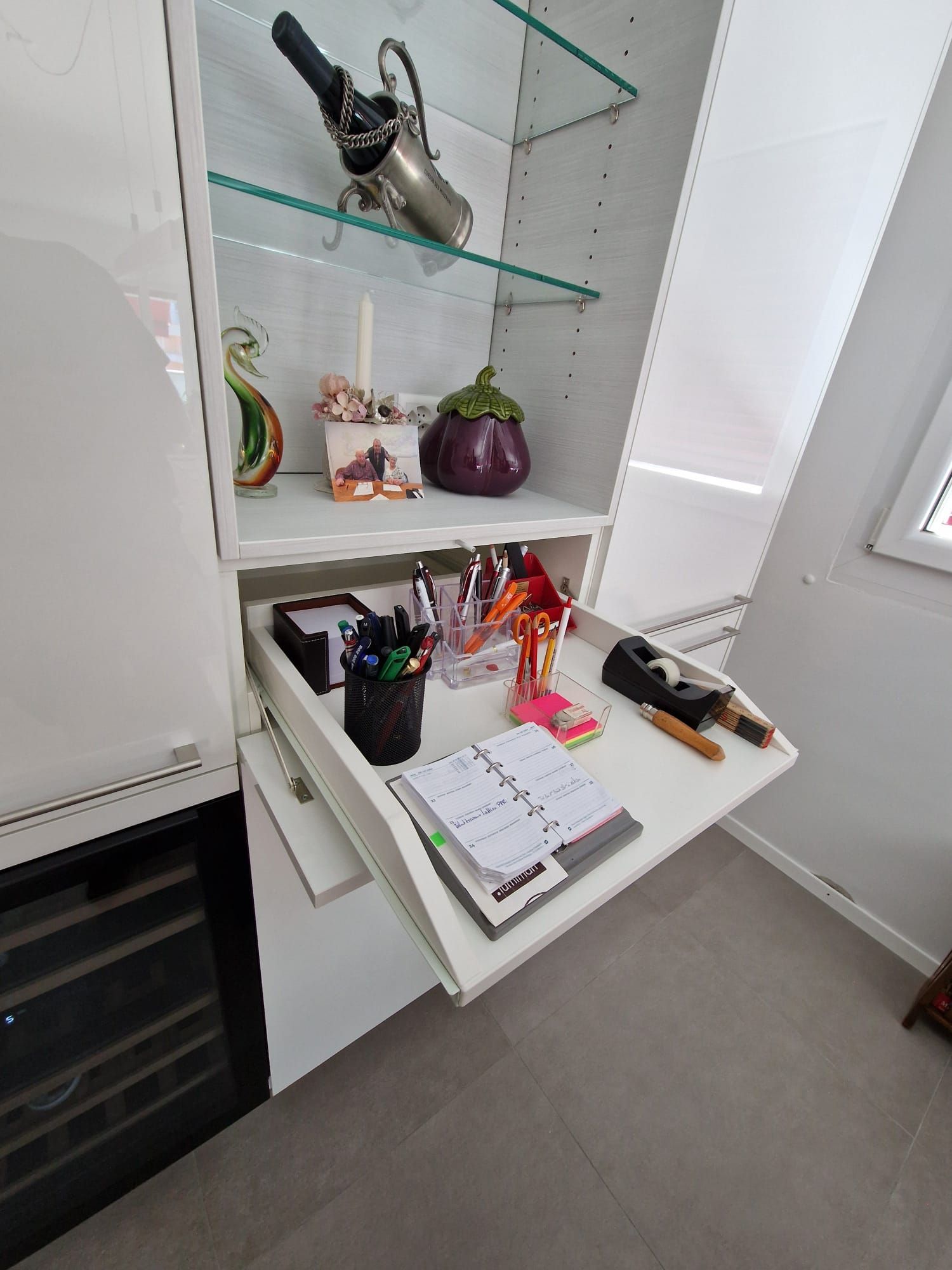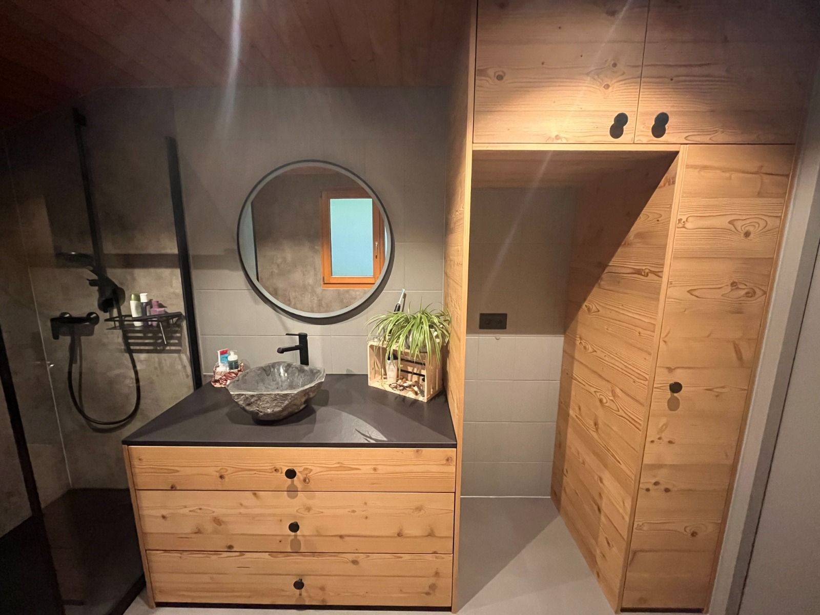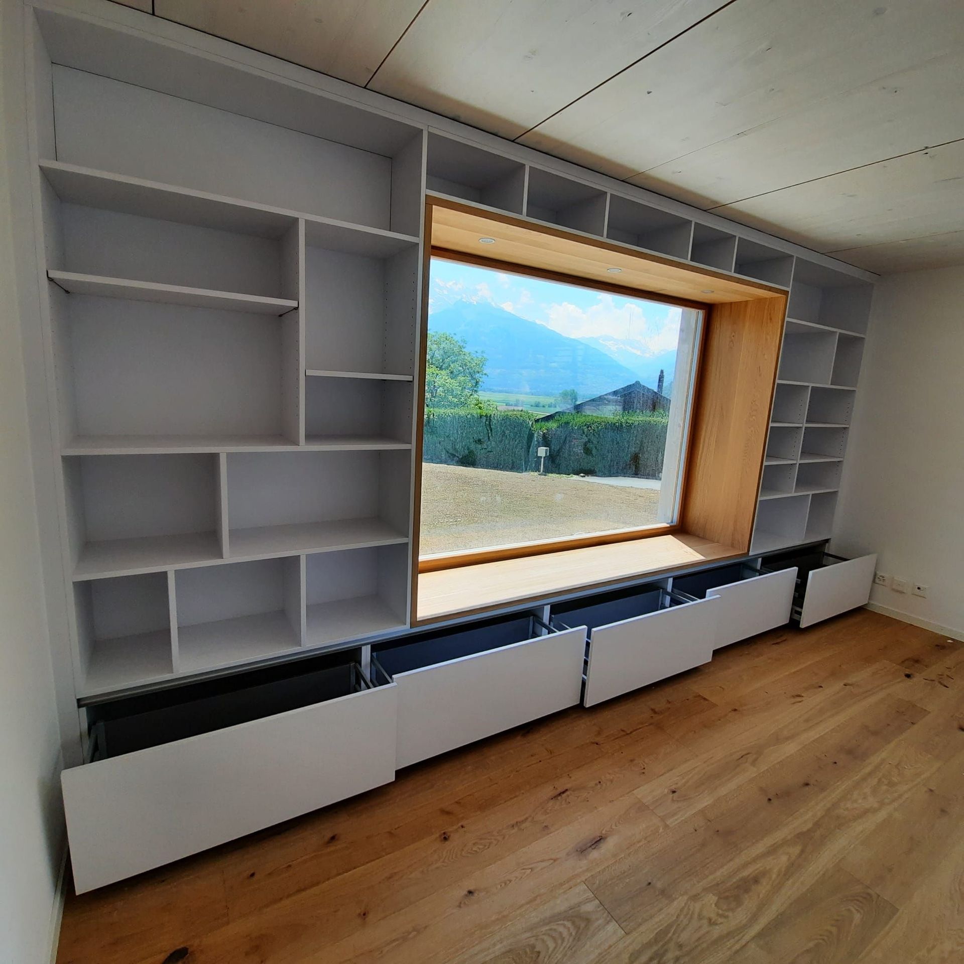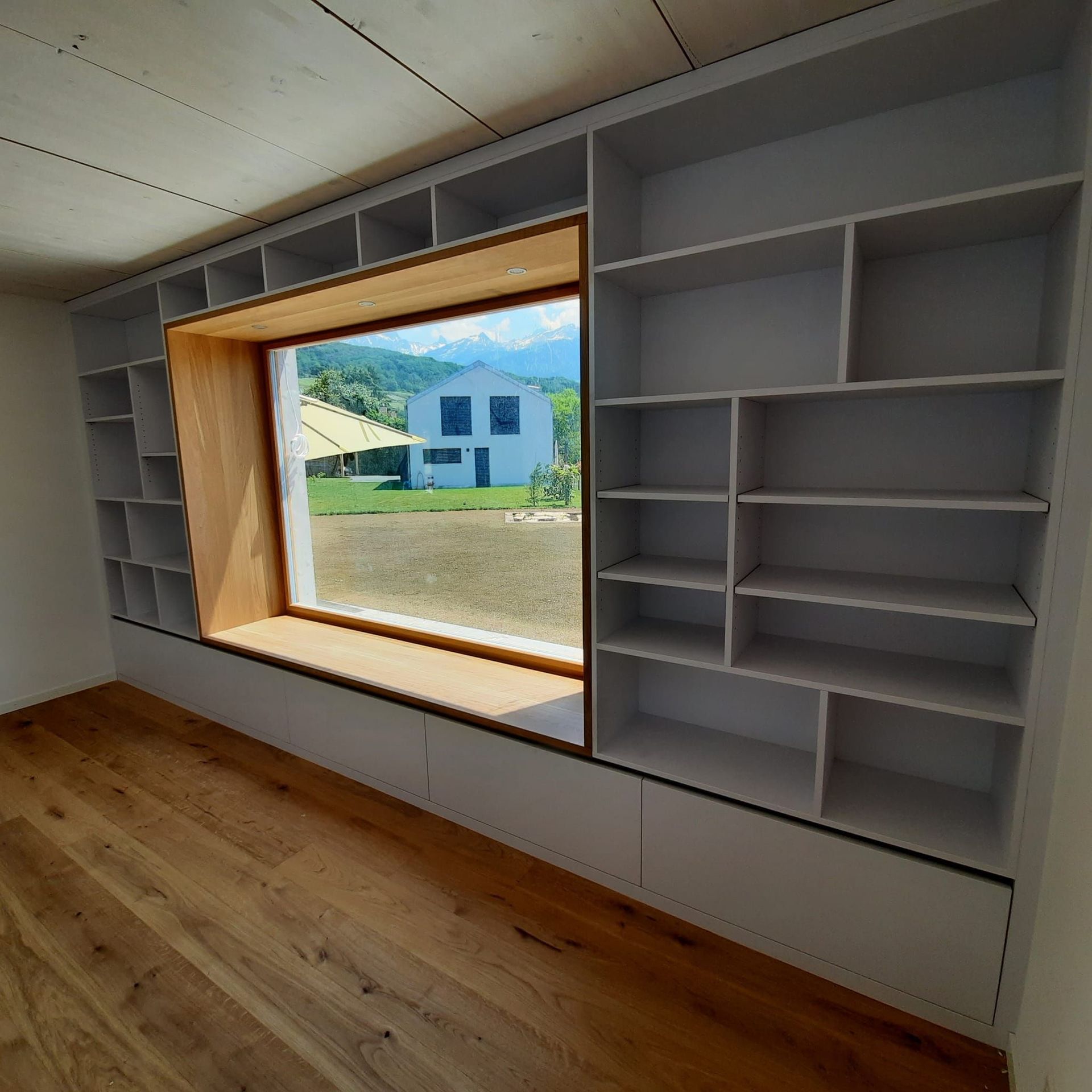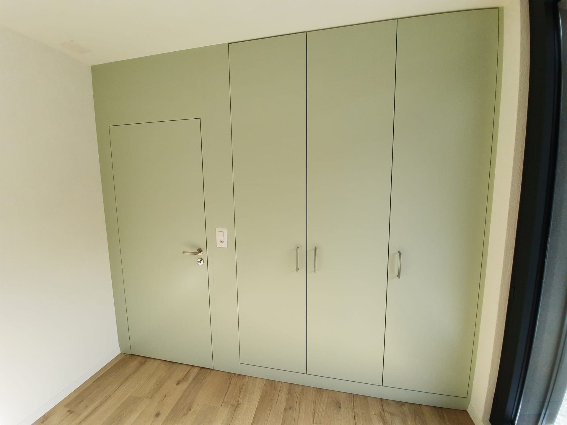 Armoires avec portes coulissantes en mélaminé avec éclairage intérieur, partie supérieure blanche adaptée pour y projeter un écran!