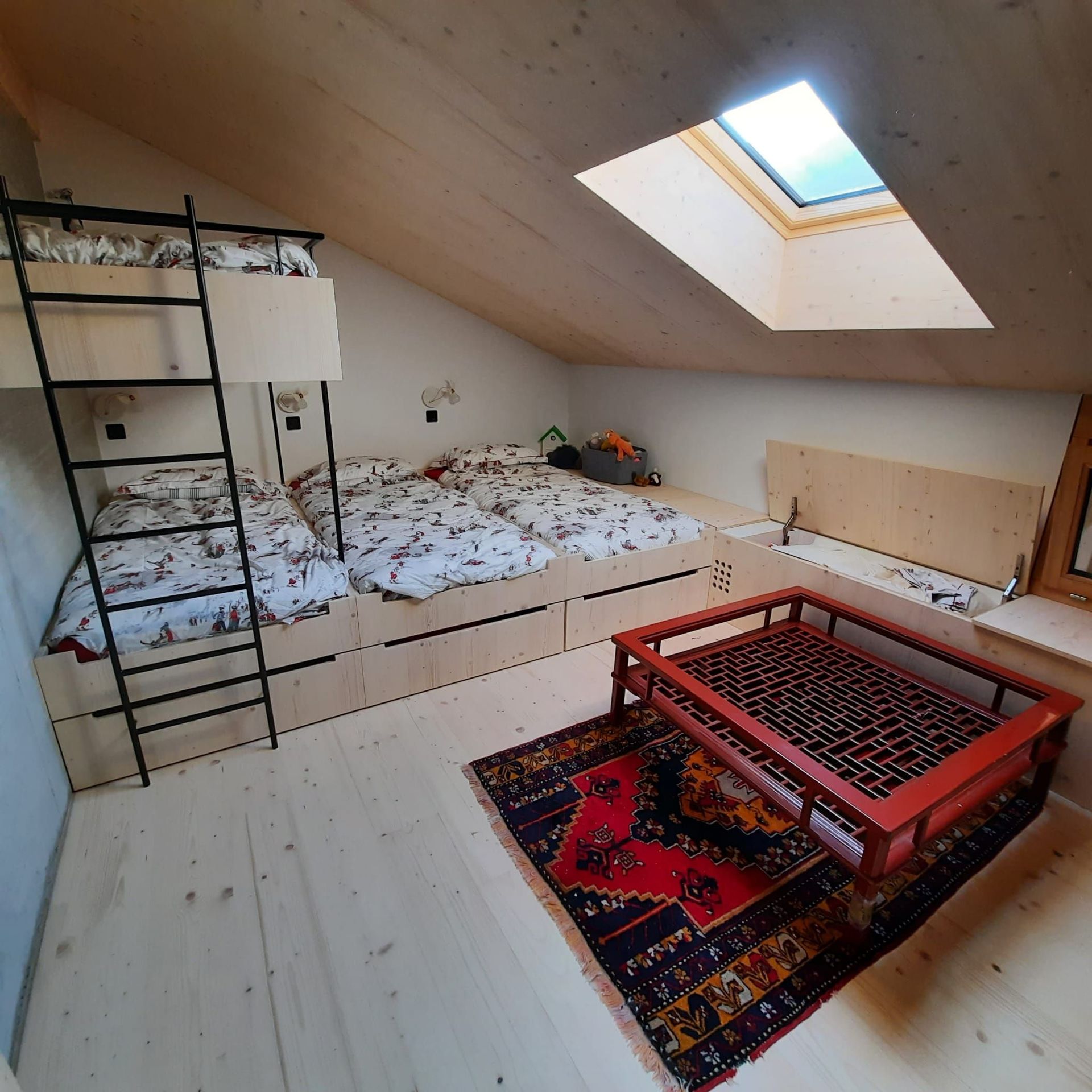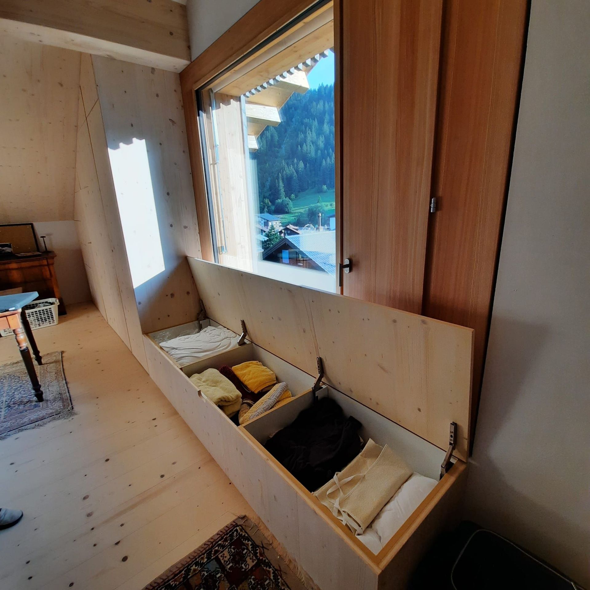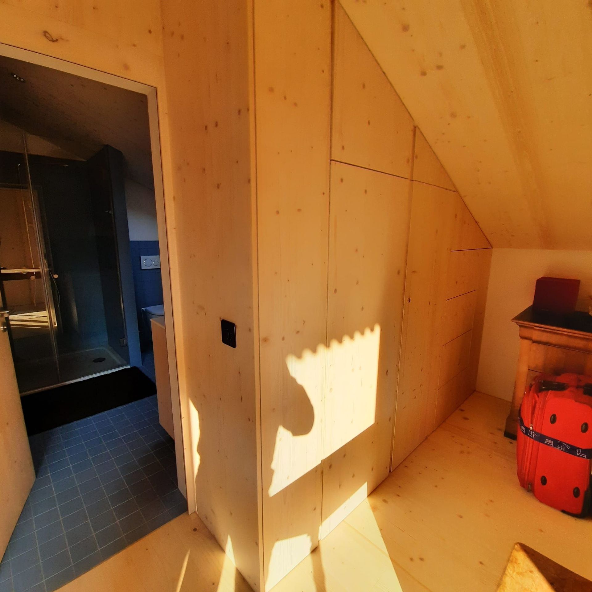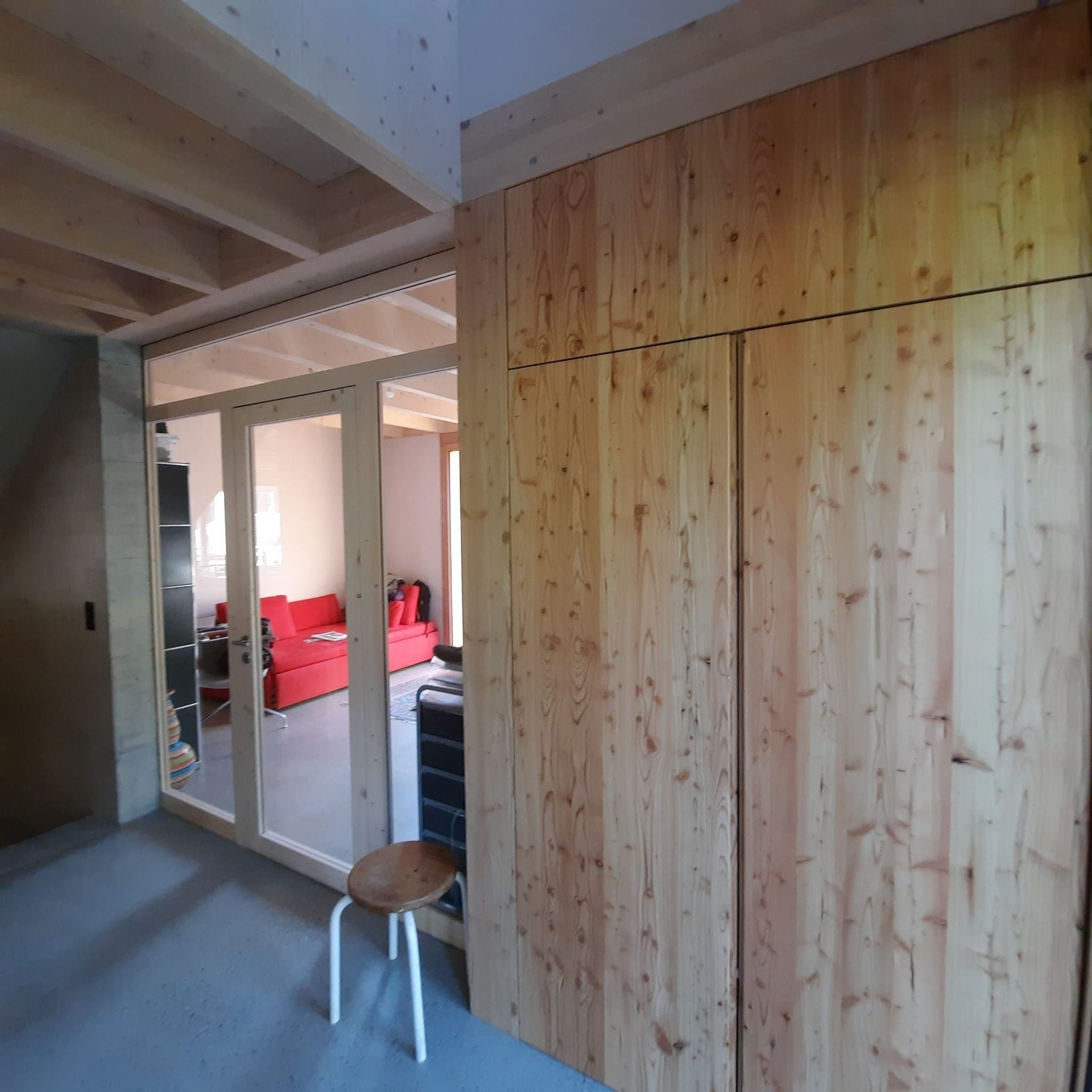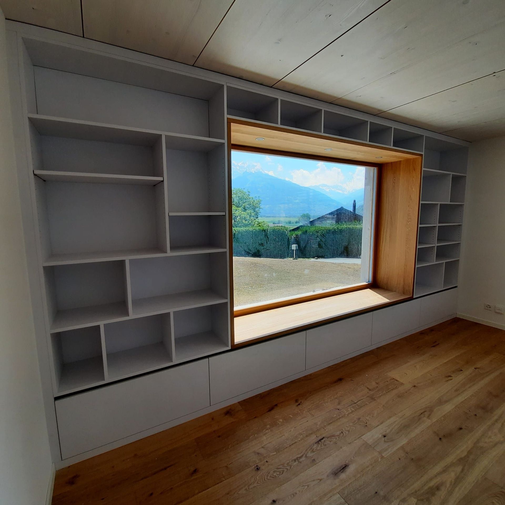 Armoires avec portes coulissantes en mélaminé avec éclairage intérieur, partie supérieure blanche adaptée pour y projeter un écran!