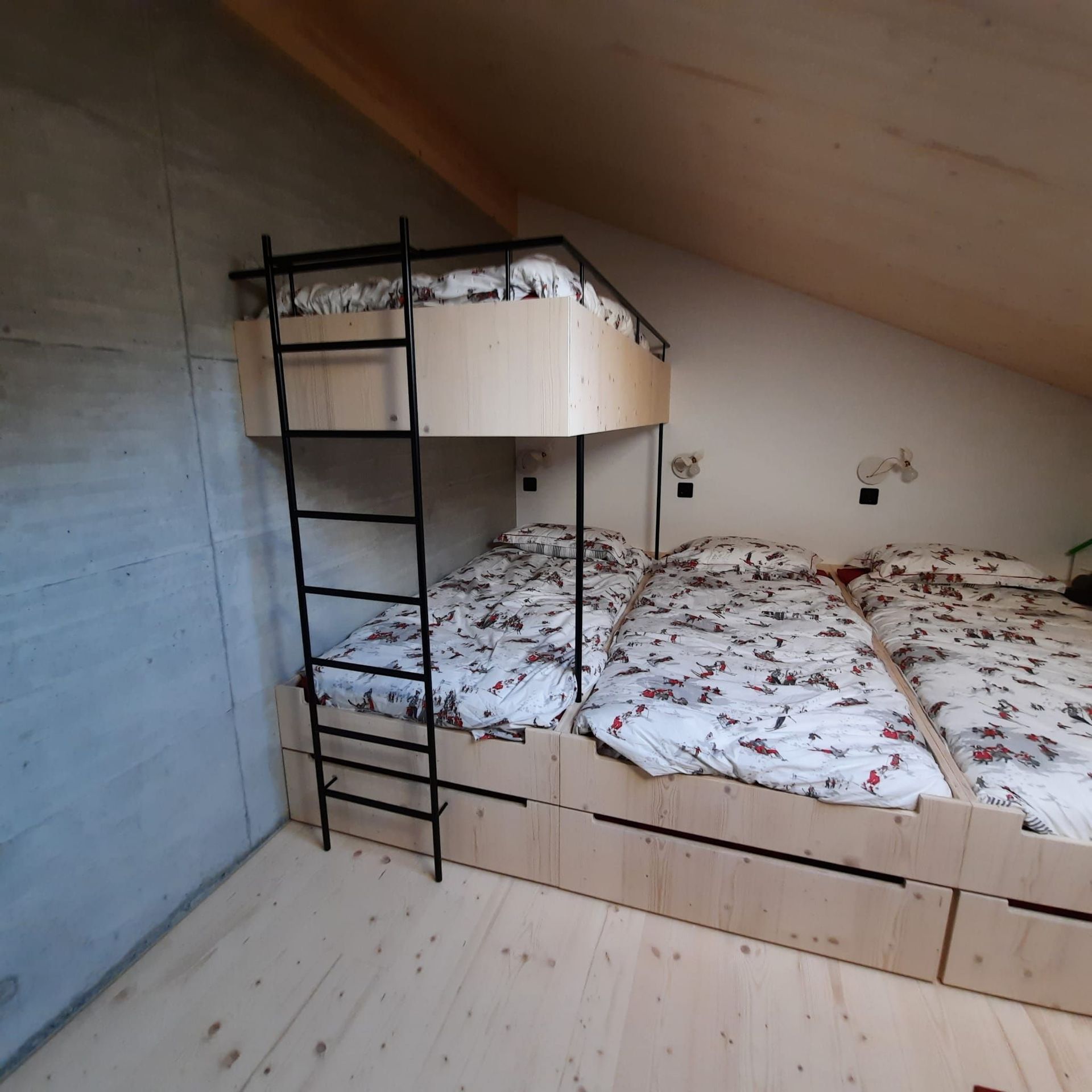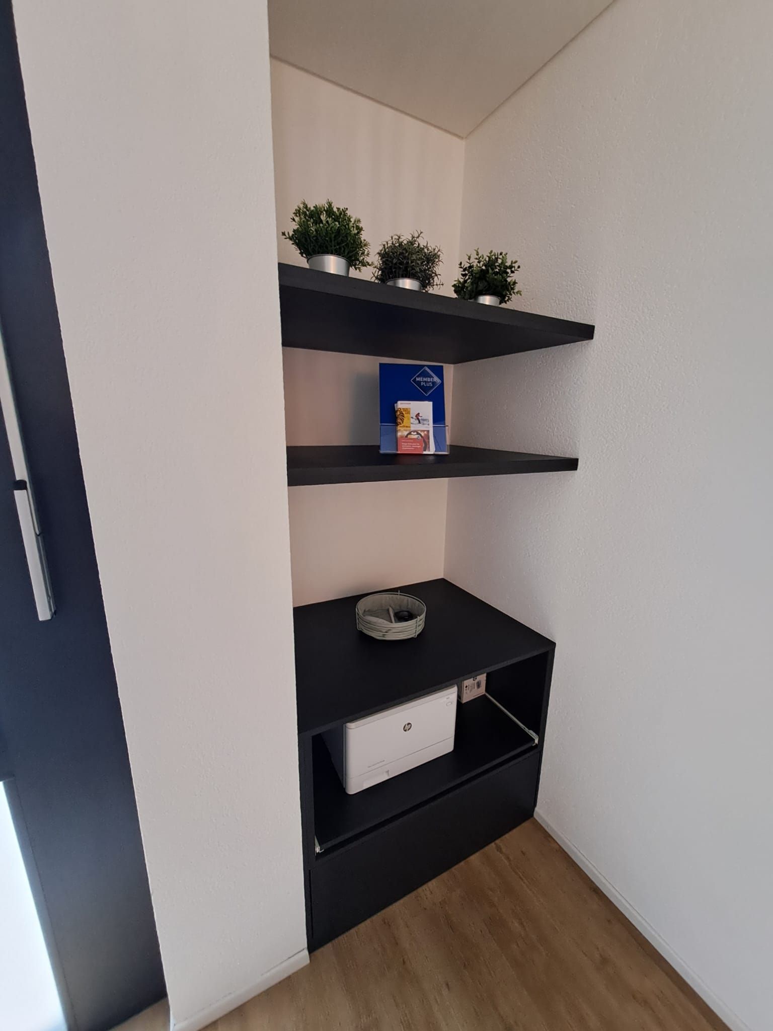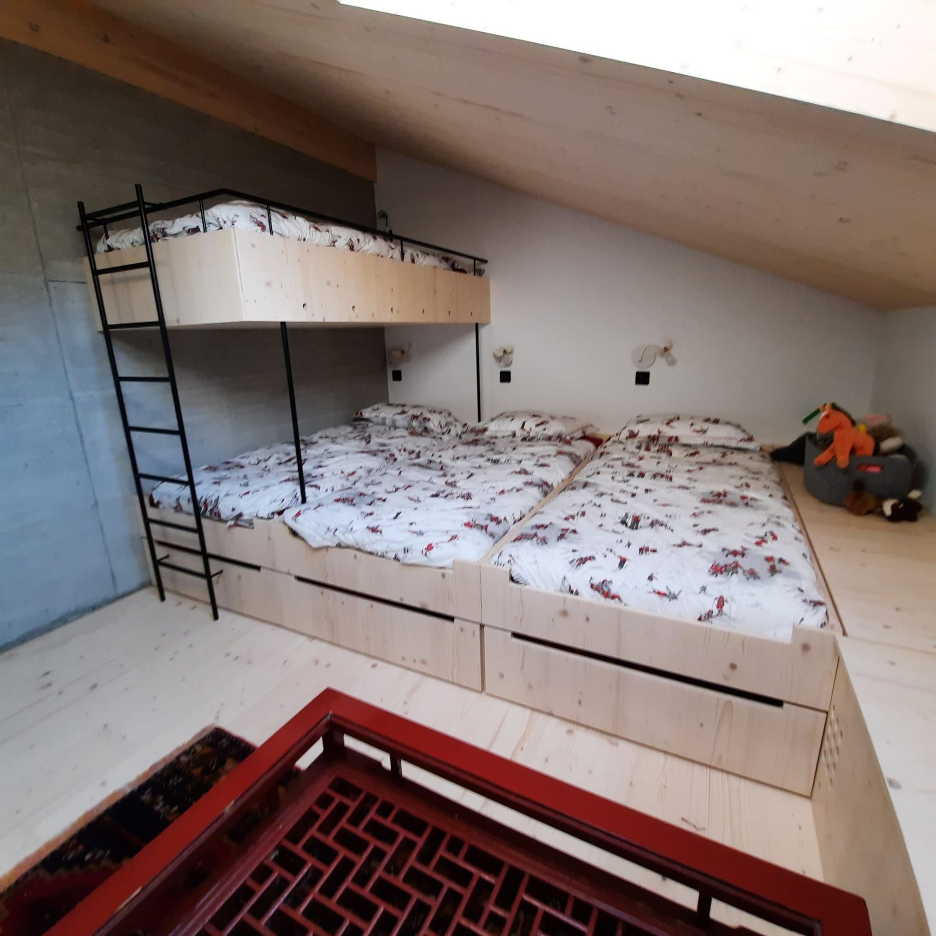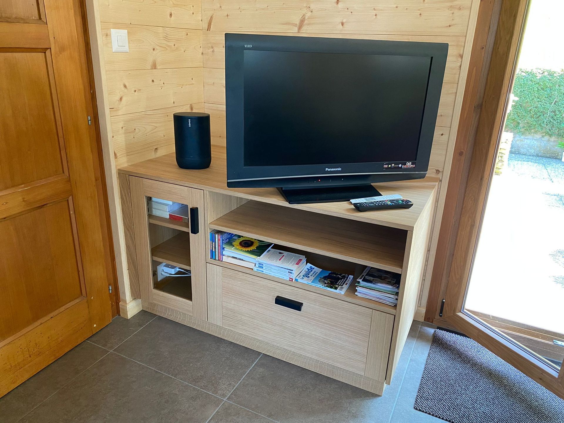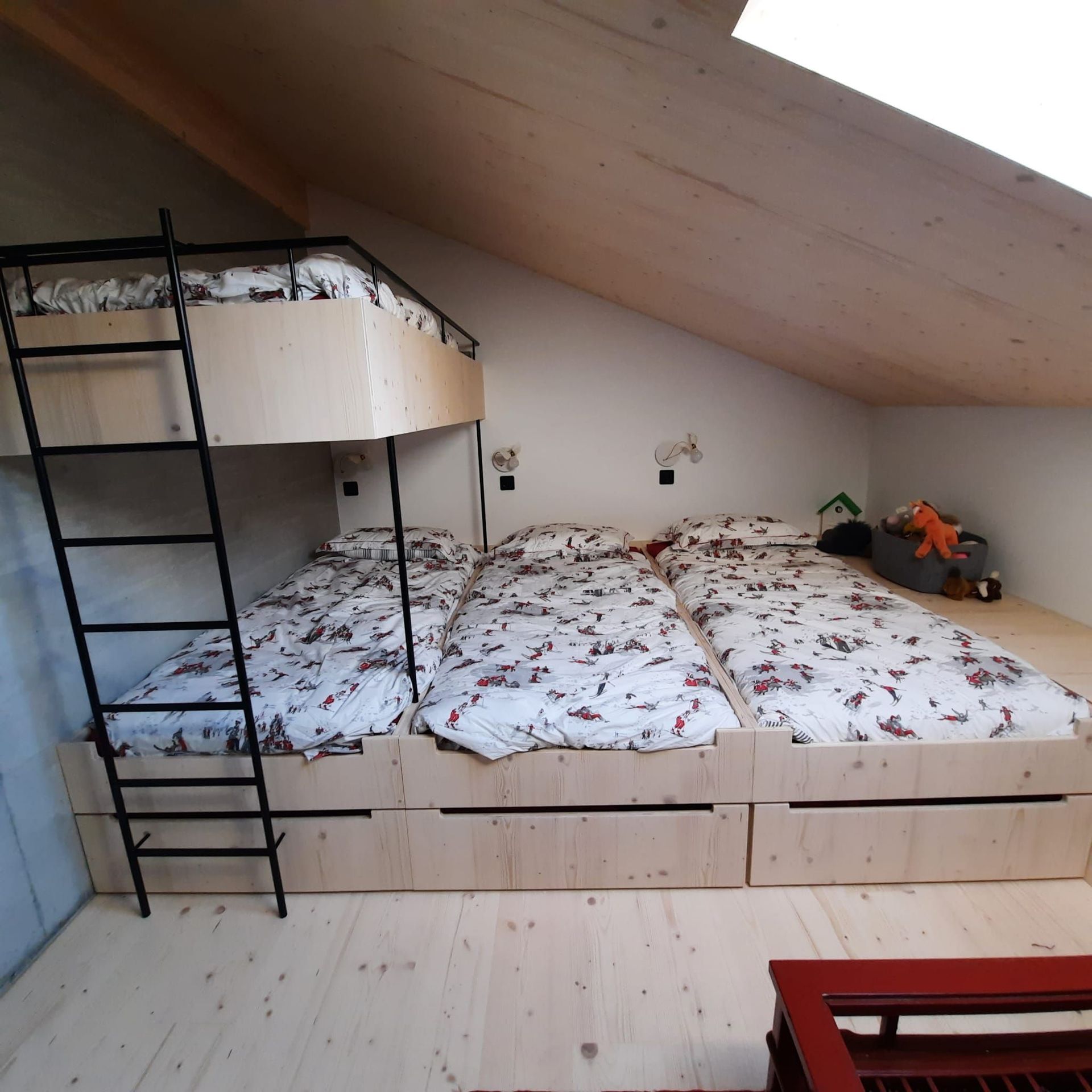 Armoires avec portes coulissantes en mélaminé avec éclairage intérieur, partie supérieure blanche adaptée pour y projeter un écran!