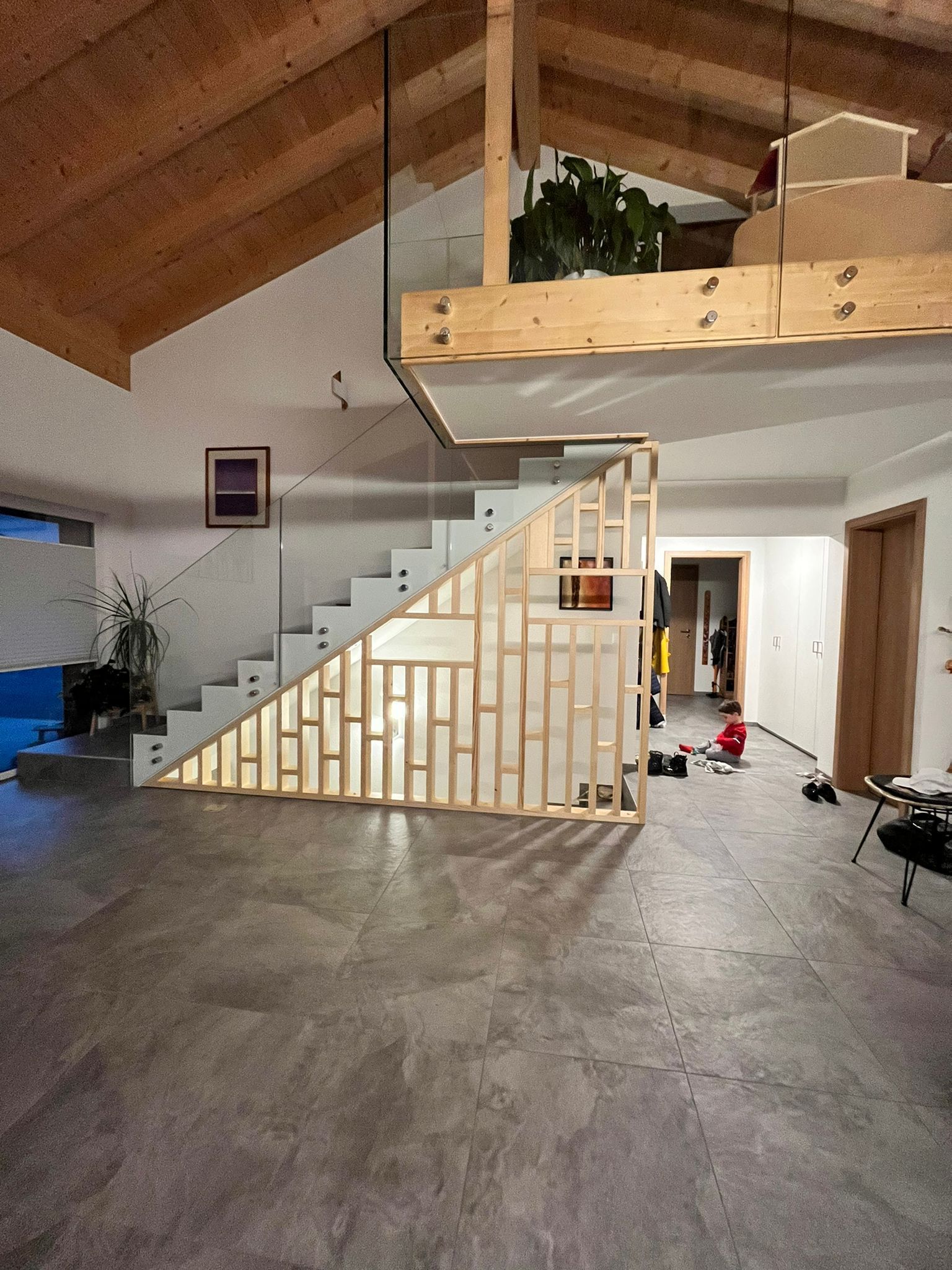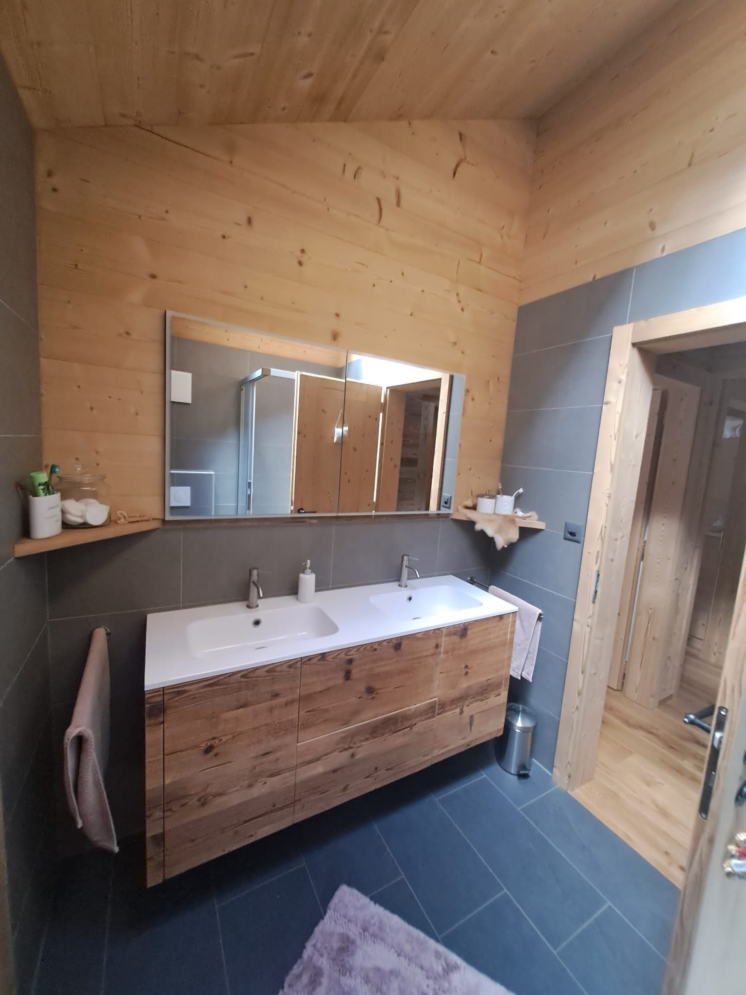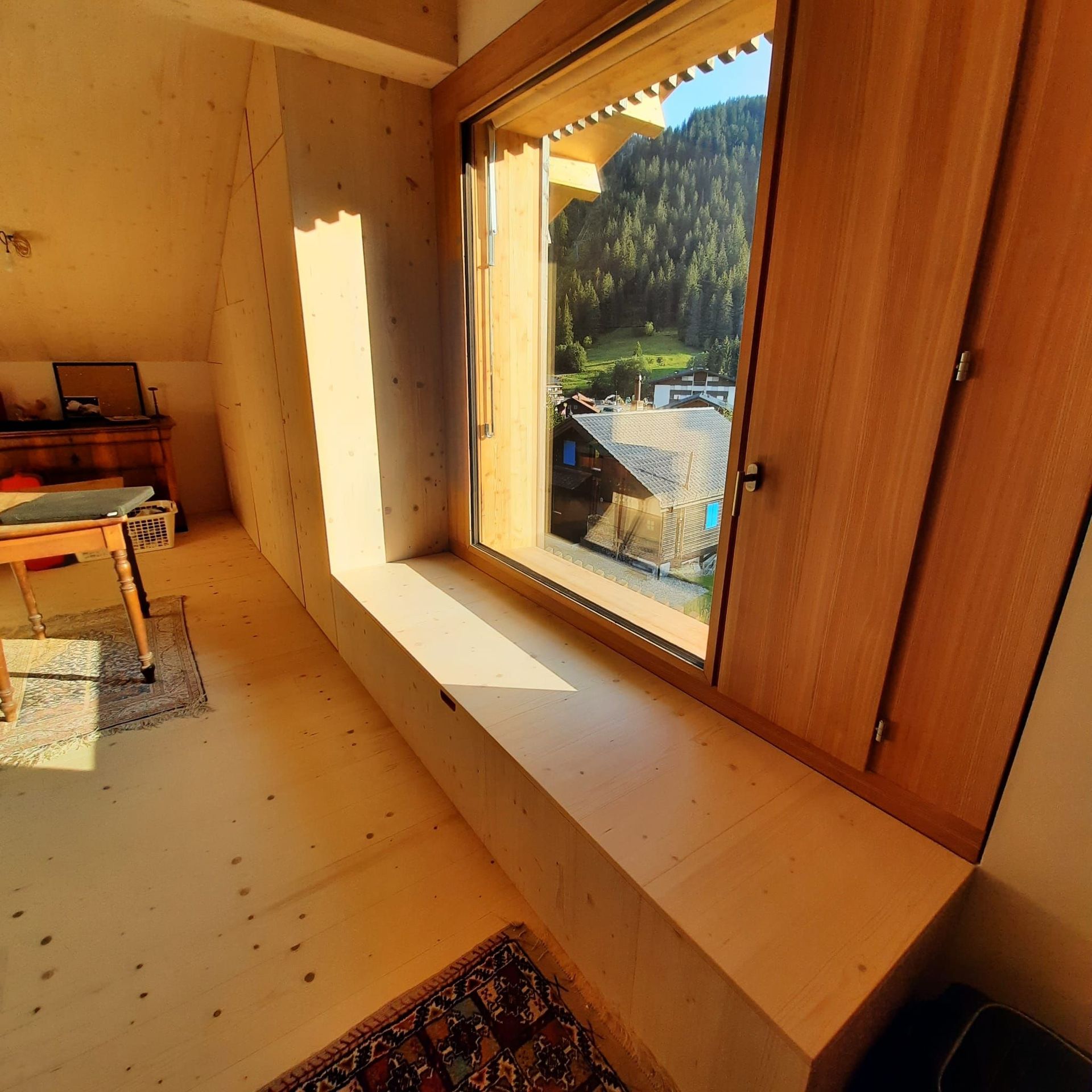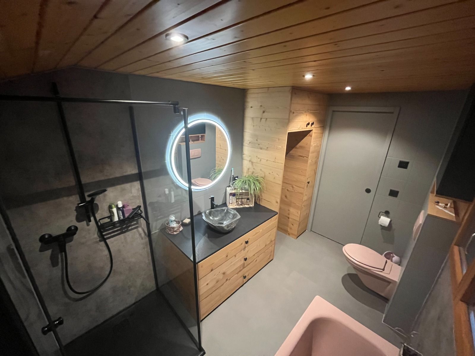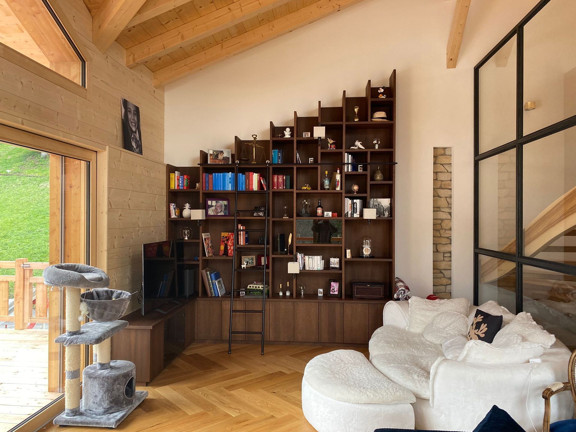 Armoires avec portes coulissantes en mélaminé avec éclairage intérieur, partie supérieure blanche adaptée pour y projeter un écran!