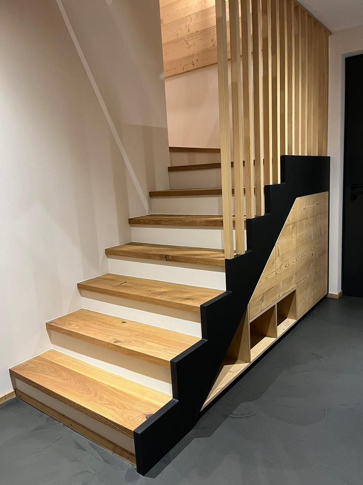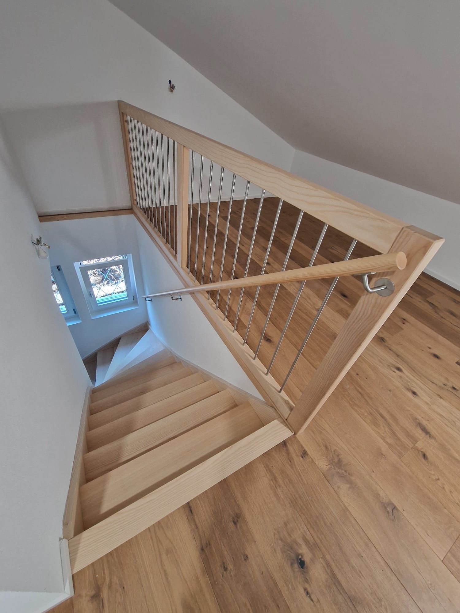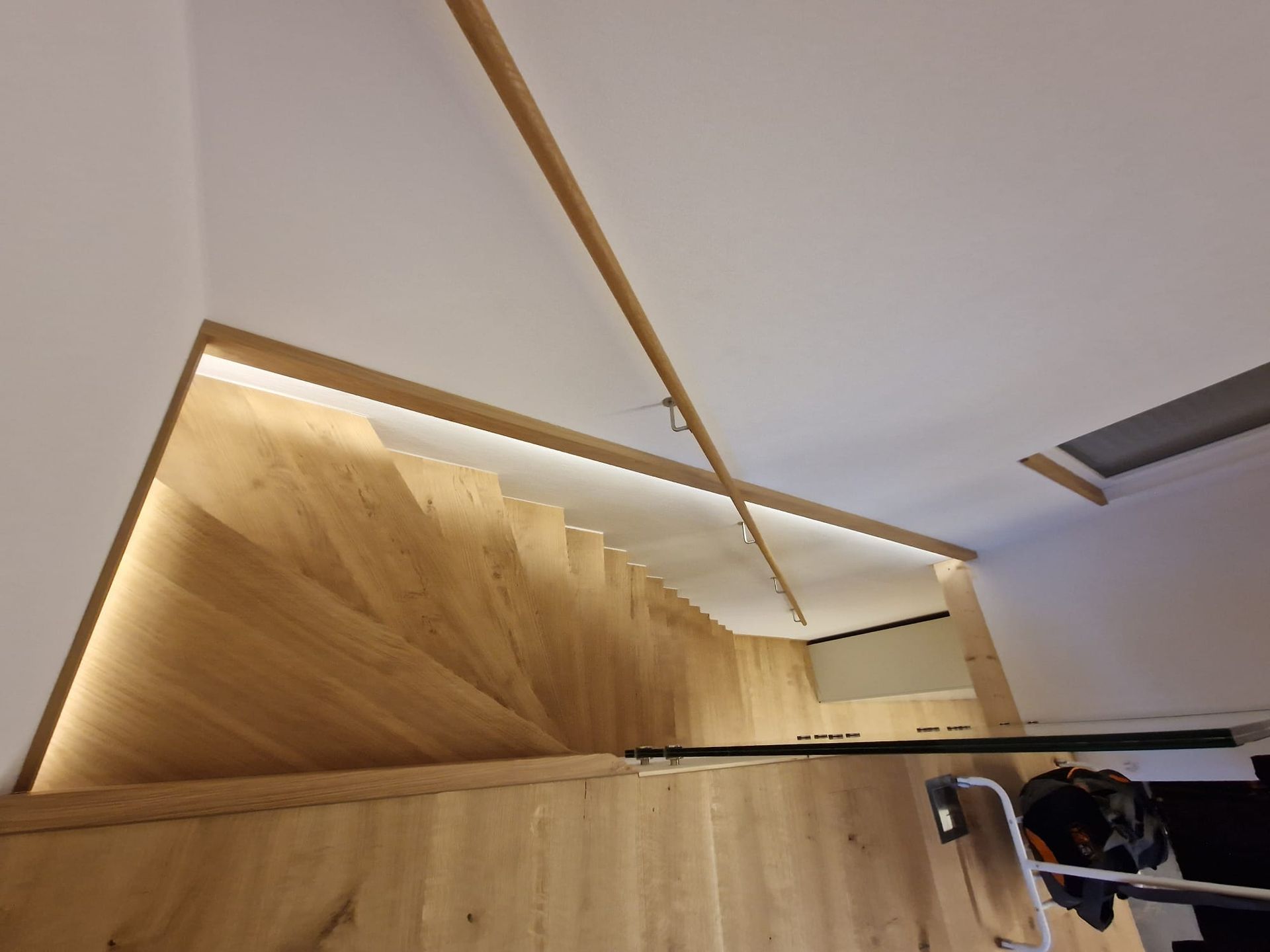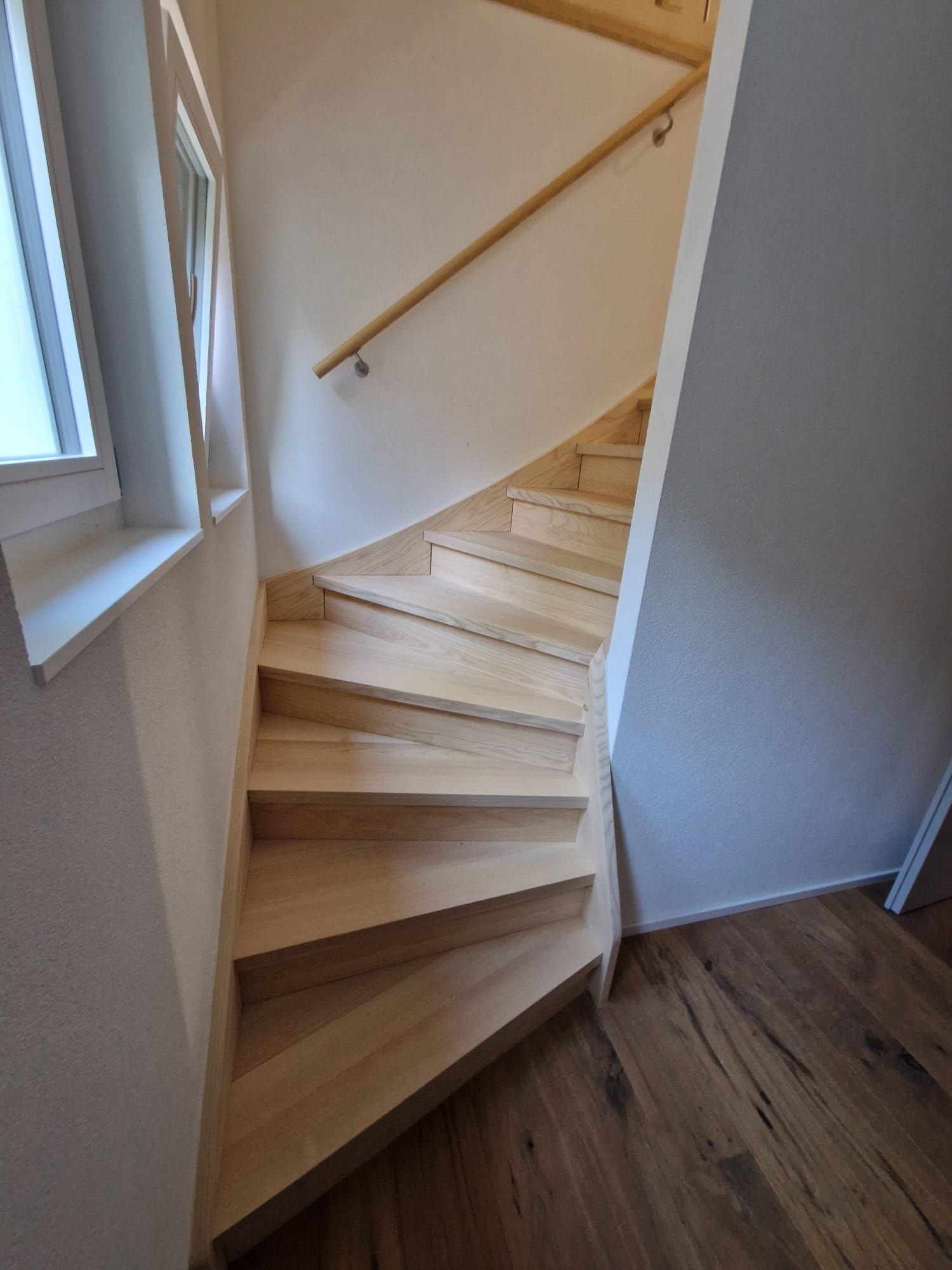 Escalier en vieux bois construit avec le madrier démonté sur place lors de la rénovation