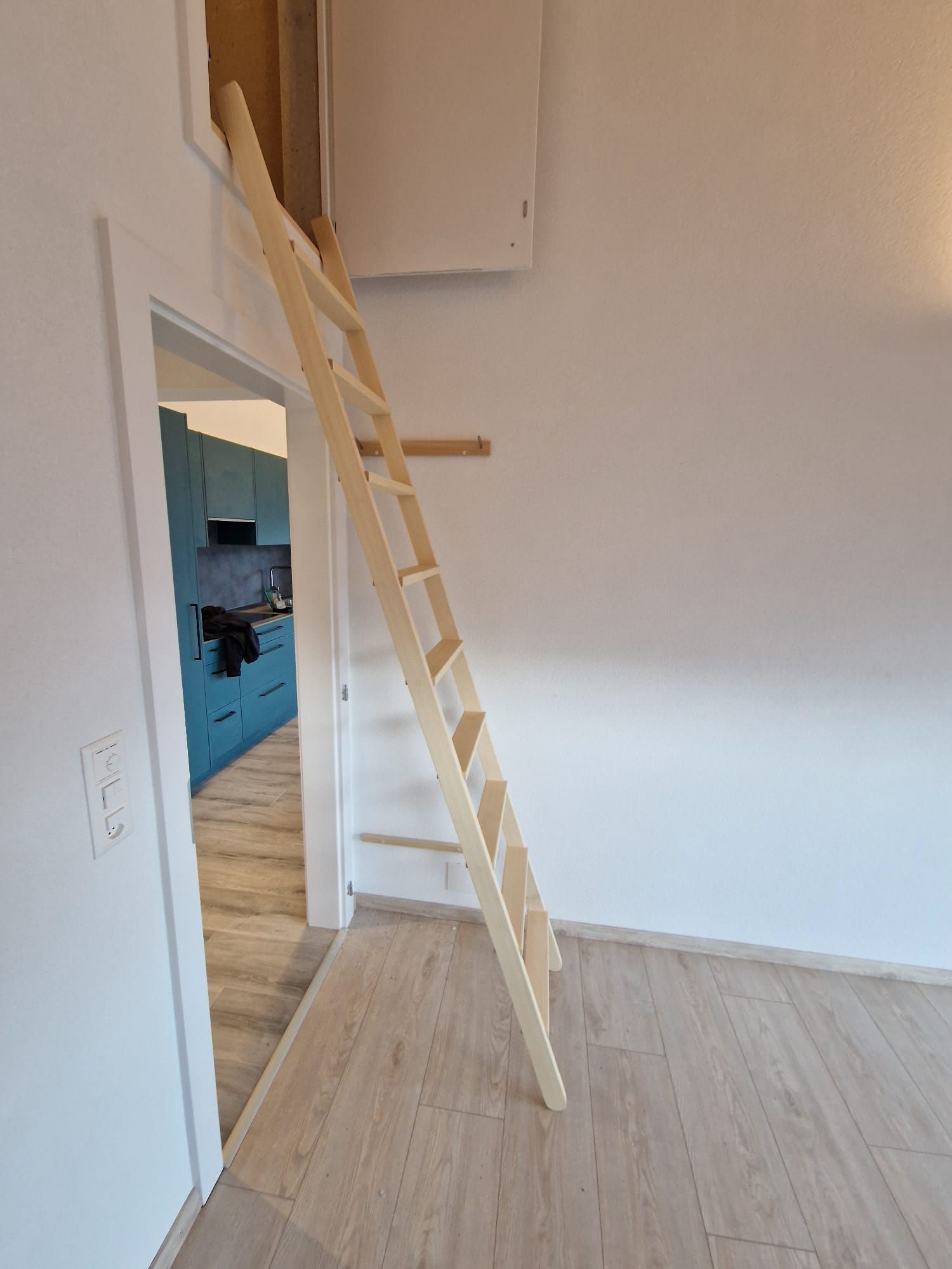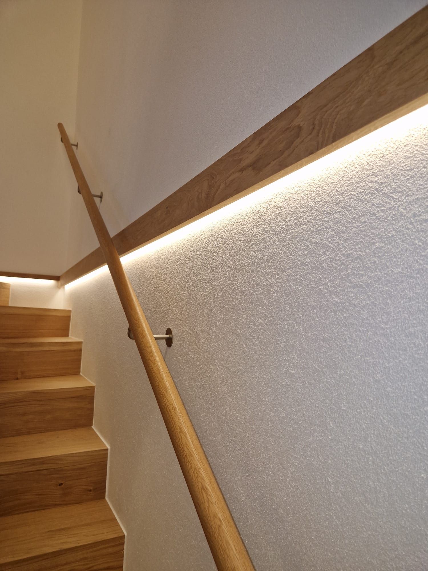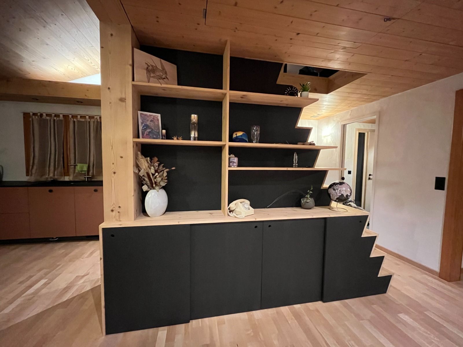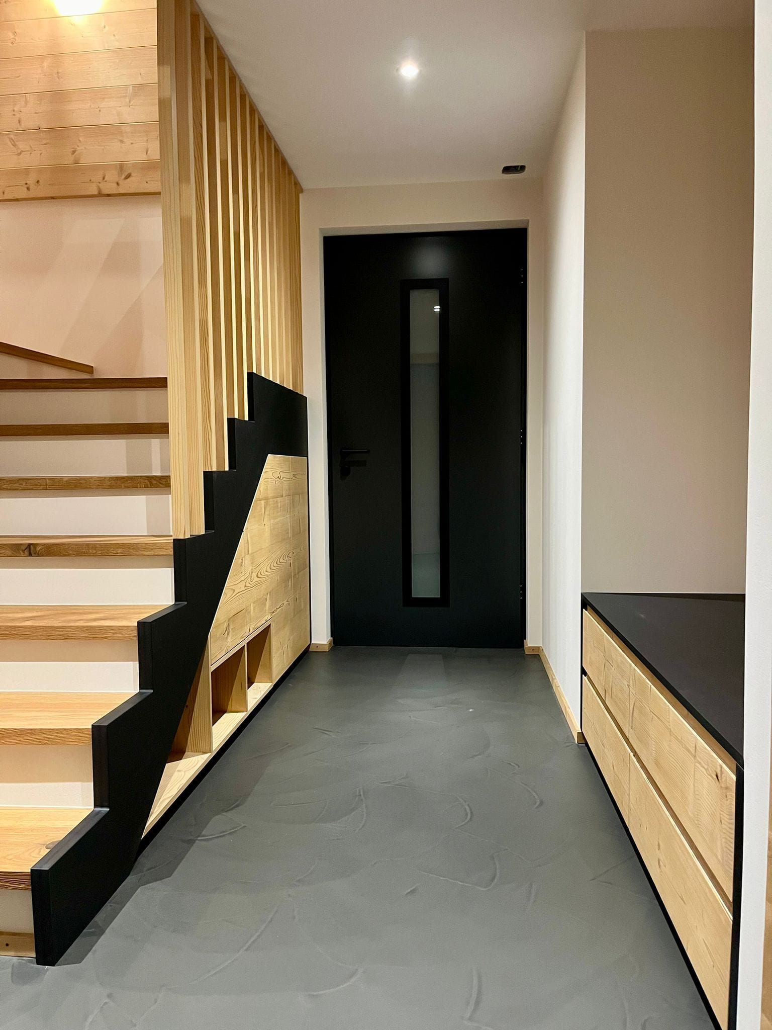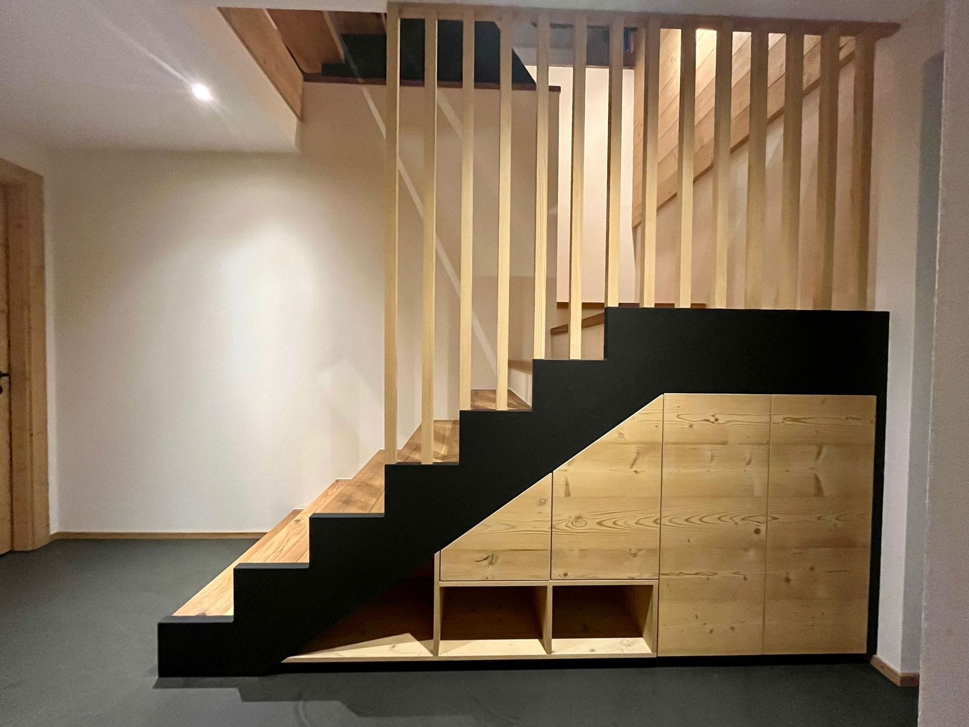 Escalier en vieux bois construit avec le madrier démonté sur place lors de la rénovation